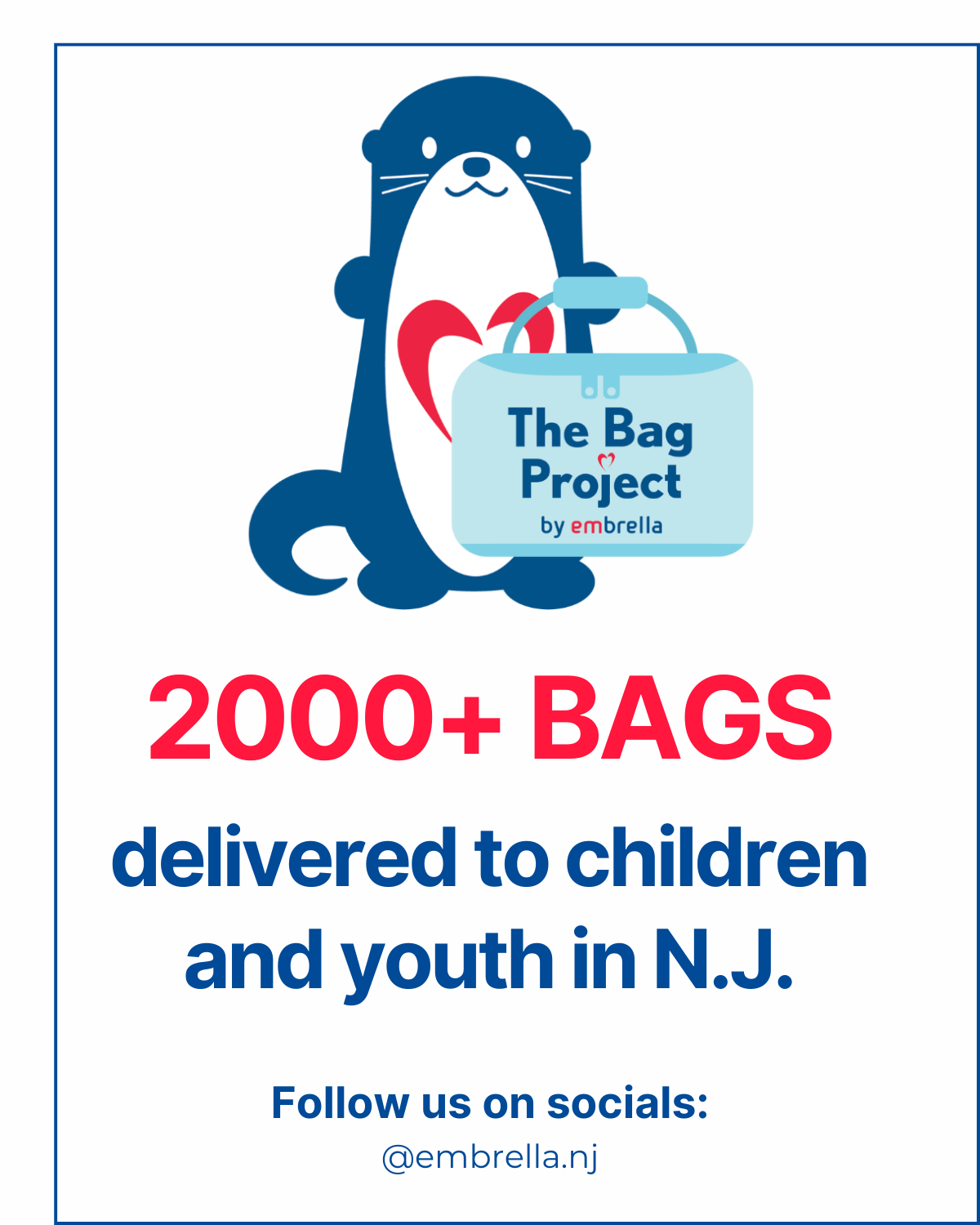 As part of embrella, The Bag Project leverages community partnerships, in-kind and monetary donations, and relationships with individuals like YOU to continue expanding its impact within the foster care and child welfare community.